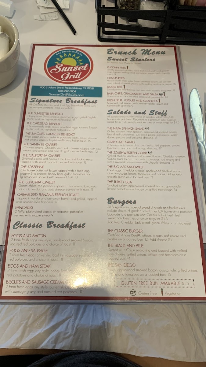 Welcome to Sunset Grill, a delightful New American restaurant nestled in the heart of Fredericksburg, TX. Here, you'll find a vibrant menu that captures the essence of modern comfort food, perfect for any occasion.
